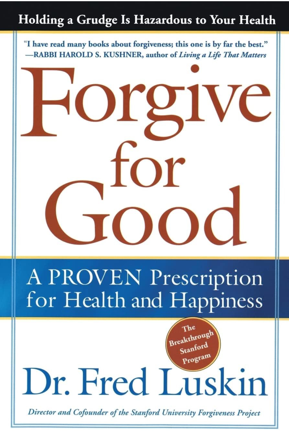Based on scientific research, this groundbreaking study from the frontiers of psychology and medicine offers startling new insight into the healing powers and medical benefits of forgiveness. Through vivid examples (including his work with victims from both sides of Northern Ireland’s civil war), Dr. Fred Luskin offers a proven nine-step forgiveness method that makes it possible to move beyond being a victim to a life of improved health and contentment.